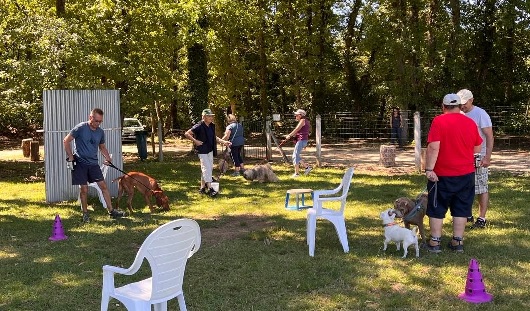 Josette et Jango, Frédéric et Lord, Marie et Tara, Martine et Freedy,